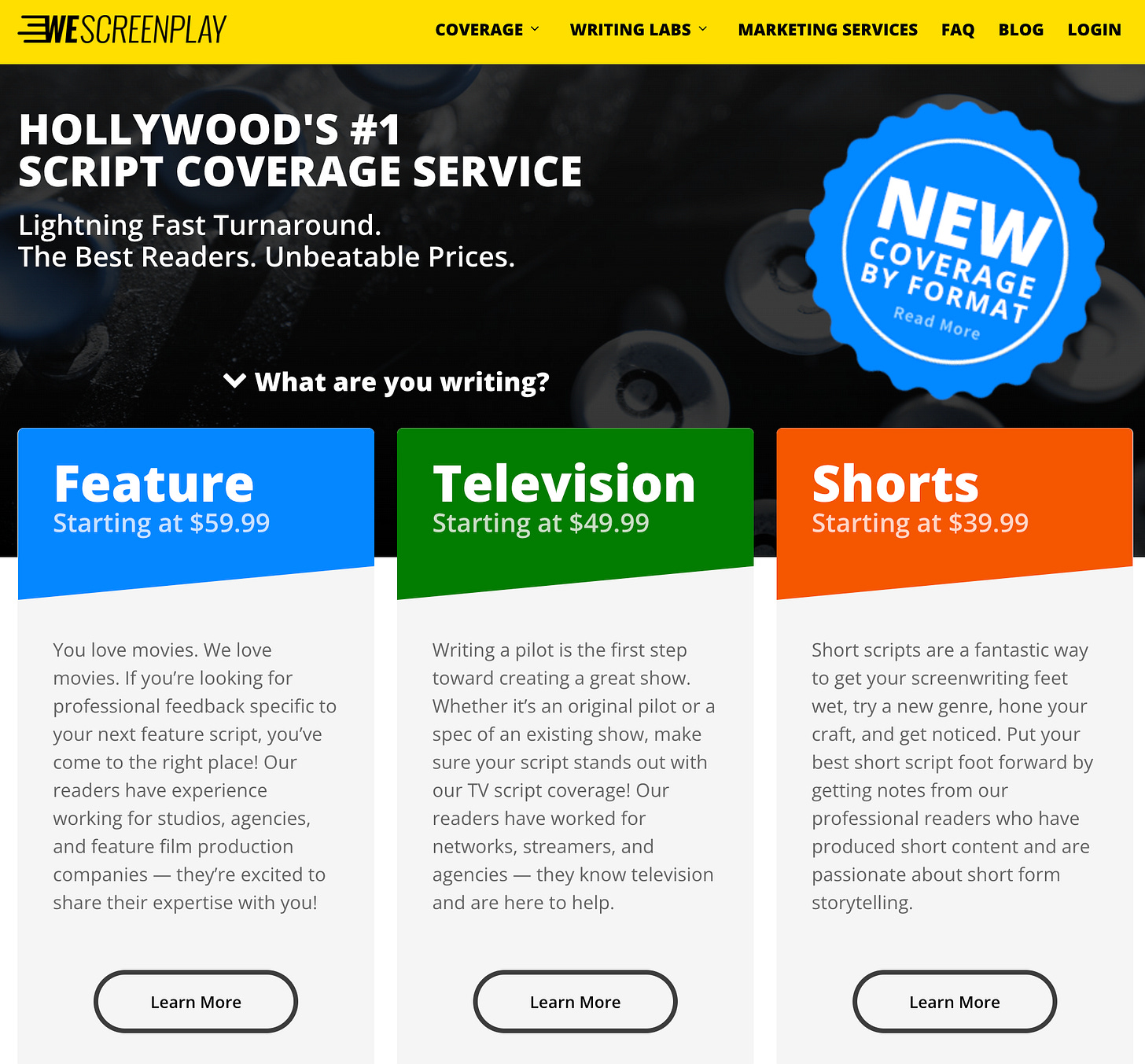 Notice they are Hollywood’s #1 Script Coverage Service. (Did I tell you I’m the #1 mailroom intern at a top three Hollywood agency?)